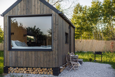 Nasz pierwszy mikrodomek Mini Stodoła to domek zlokalizowany na początku działki z charakterystycznym dwuspadowym dachem.